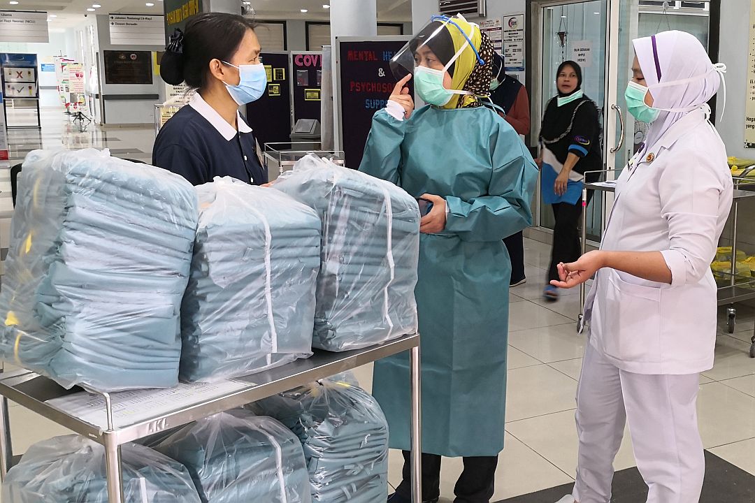 此时医院急需医疗防护用品,但是货源短缺,短期内无法大量提供给最前线的抗疫医护人员,院方急得如热锅上的蚂蚁。前线医护人员急需防护用品,如防护衣、面罩、防护鞋、防护帽等来保护自己免受感染。任职于中央医院药剂部门的慈济志工见此情况,建议寻求慈济支援。