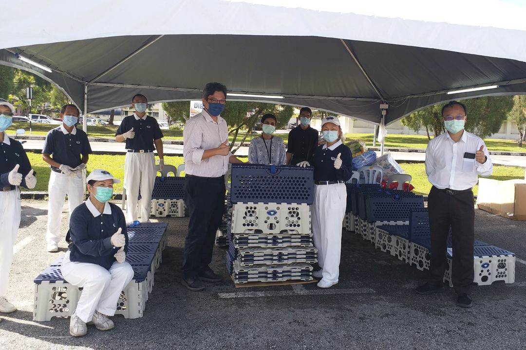 2月2日上午十时,载着福慧床的罗里抵达诗巫医院。六位慈济志工和五位医护人员已在临时冠病检测处的停车场等候,合力搬运福慧床、枕头和床褥。