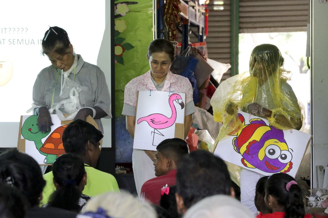 双司仪李佩锶(明衍)与卡莱(Kalaiselvi A/P Jeyaraman,虑丝)分别以马来语及淡米尔语欢迎大家的到来,并邀请大家一同回顾“2018年照顾户环保体验回顾”影片。从影片中,照顾户喜见自己的身影出现在屏幕上,脸上不禁露出欣喜的笑容。