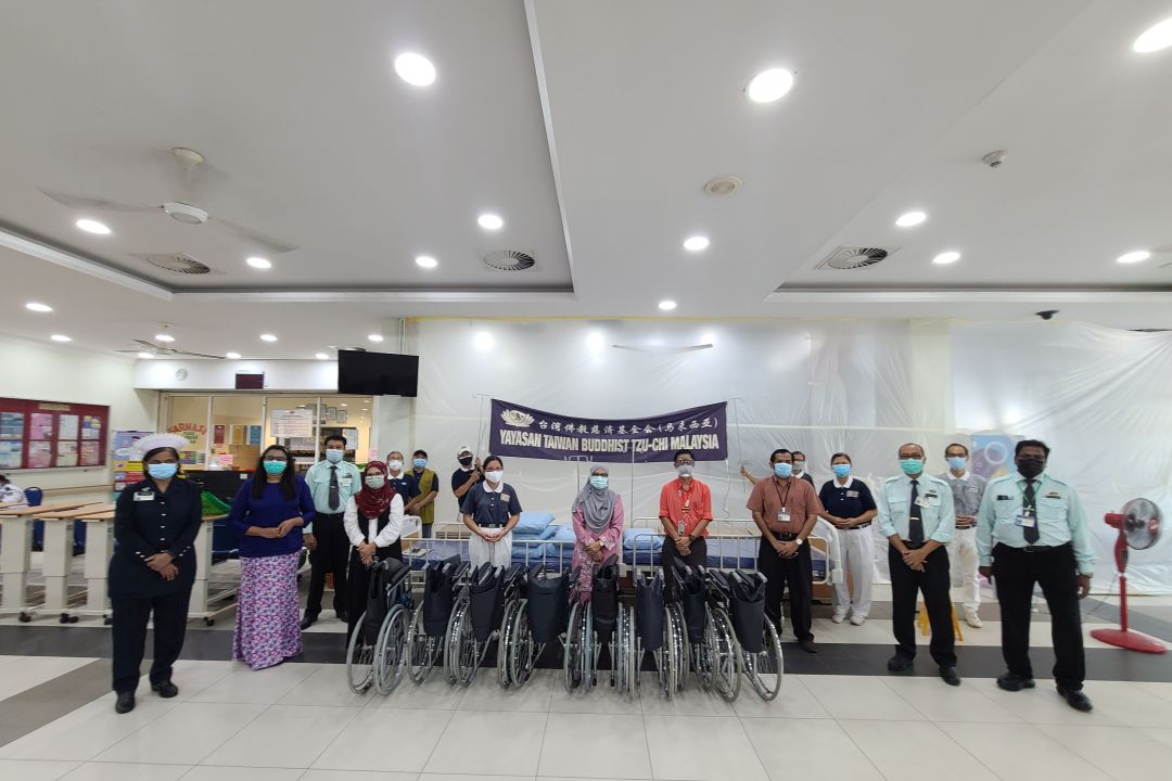 2021年7月13日(星期二)上午十时,芙蓉慈济志工在会所将十张轮椅,贴上慈济标志后,推上慈济卡车准备捐赠予芙蓉中央医院(Hospital Tuanku Ja’afar Seremban 简称HTJS)。