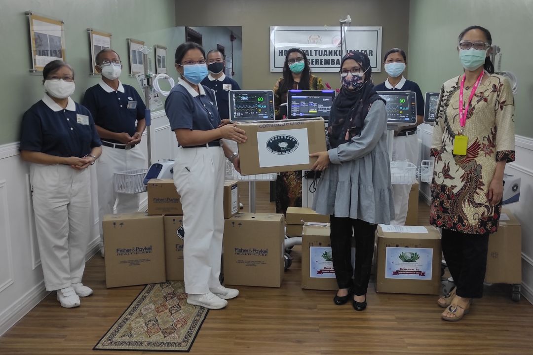 院长因医务繁忙外出,由行政部副院长哈菲扎敦(Hafizatun Bt. Ramlan)代表接领。哈菲扎敦说:“我感到荣幸,慈济在疫情严峻下,能支援院方的医疗器材。今天这批价值不菲的器材,将被安置在医院的紧急部门、加护病房和儿童科部门,以期可以抢救更多受病毒感染的病人。”
