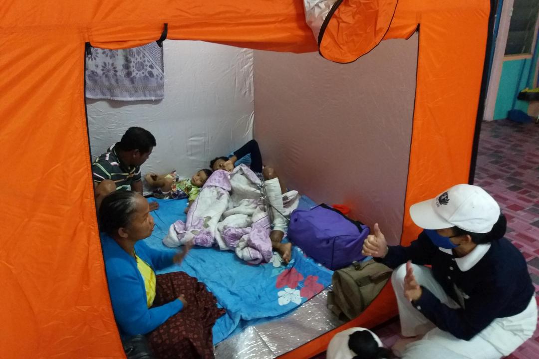 志工到临时疏散中心关怀灾民。【摄影:林士芳】