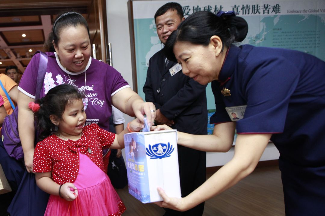 典礼尾声,人人虔诚祈祷为印尼苏拉威西岛(Sulawesi)受灾的灾民送上一分祝福,家长、老师们热络地响应捐款,孩子们也纷纷捐出手中的竹筒扑满或是掏出零用钱,将自己所收到的爱再传递出去,也为今年的奖助学金画下圆满的句点。