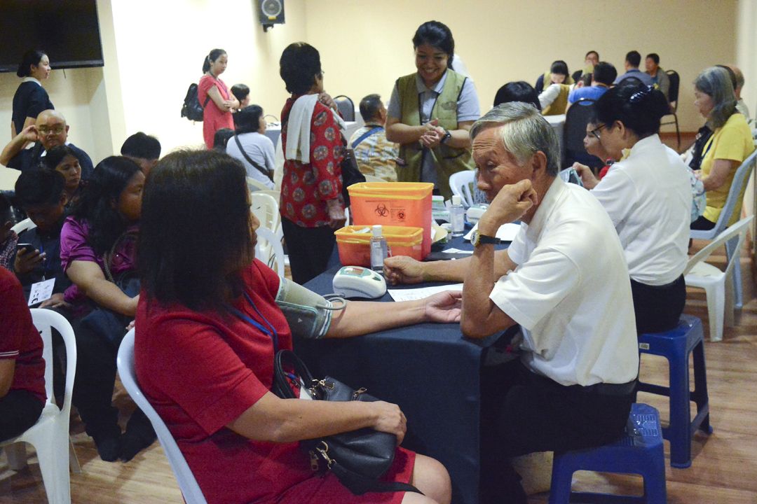 细雨纷飞,但阻不了踊跃赴会的人群。当天出席的照顾户,有些靠轮椅代步,有人拄着拐杖,有者由亲人陪伴;志工们则冒雨以专车接送没交通的赴会者。