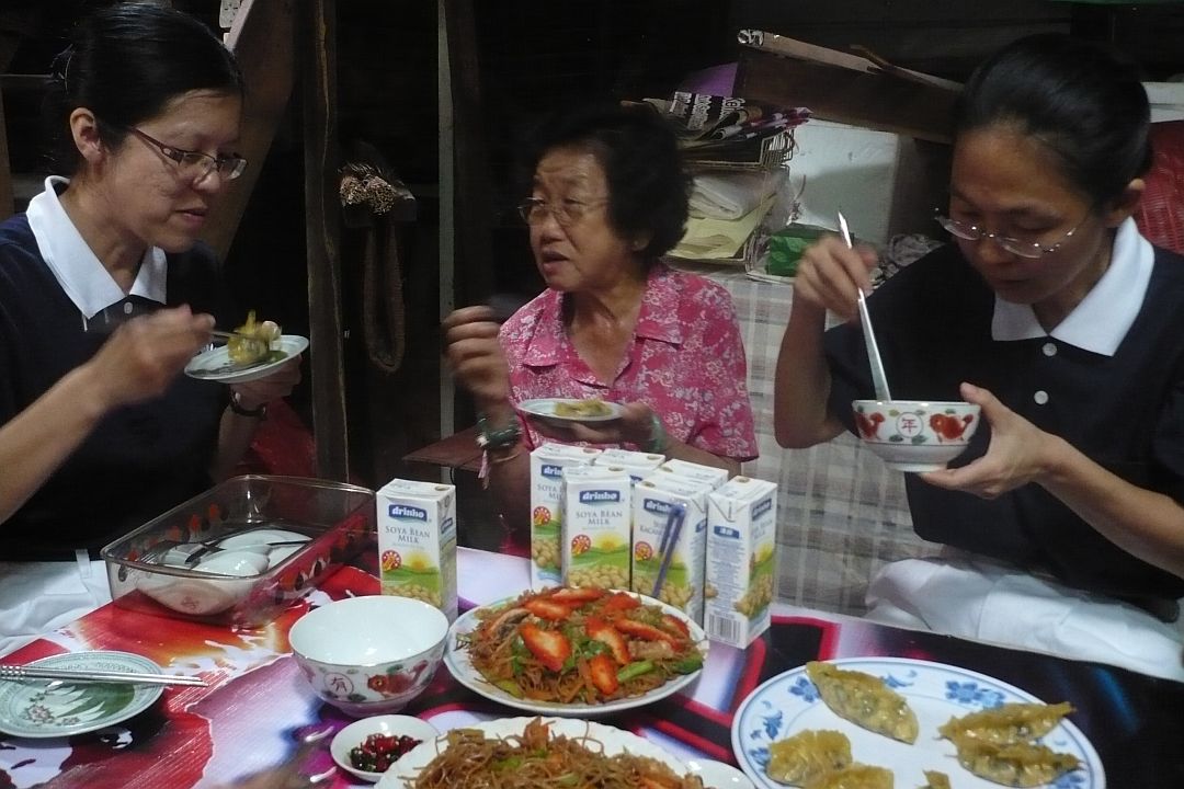 早期新年,曾玉梅阿嬷知道志工将前来拜年,特地准备好炒米粉招待志工。【摄影:周丽珠】