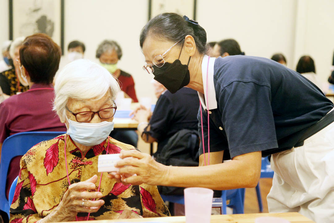七十四岁的刘淑英不好意思地说:“女儿有买血压机给我,但是一个人懒惰不会想要拿出来用。”一旁与她结伴同来、八十二岁的林琼花,听闻自己血压数字偏高则表示,每天都定时服药,不知道自己血压偏高。志工请她放轻松,血压偏高因素很多,今日忘记服药,前一晚睡不好,情绪太紧张等等都会有所影响,请她稍作休息,待会才重新测量。刘淑英欢喜地表示,来这里上课,每次有志工帮忙测量,保护老人家的健康真好!