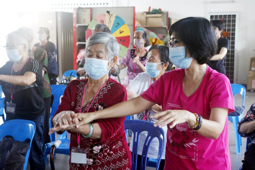 长者学堂里,卓玉娣笑开怀,跟着大伙一起做运动操,一旁的女儿王红婷也开心地时而拉起母亲的手,协助母亲跟随老师的动作,时而活动自己身体。王红婷欣慰地说:“母亲在家完全不愿意动,连电视都不看,对生活完全失去活力和兴趣。真的很考验子女的耐心和耐力!来到这里看见一大群人,妈妈愿意跟着大家一起动,一起学习,还笑得很开心呢!”