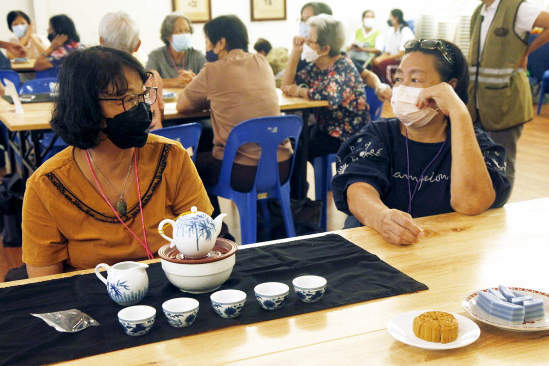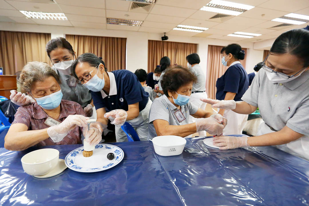 9月26日第二堂课,安排茶道与制作月饼,林琼花与刘淑英未曾做过月饼,又鲜少泡茶喝。两人将亲手做的月饼小心翼翼地放入盒子,异口同声表示,今日学会泡茶,回家泡给孩子喝,再边与孩子们品尝月饼,还要将月饼食谱与孩子们分享,让家人可以一起制作不用烤箱,半小时内就可以完成的简单健康净斯月饼。