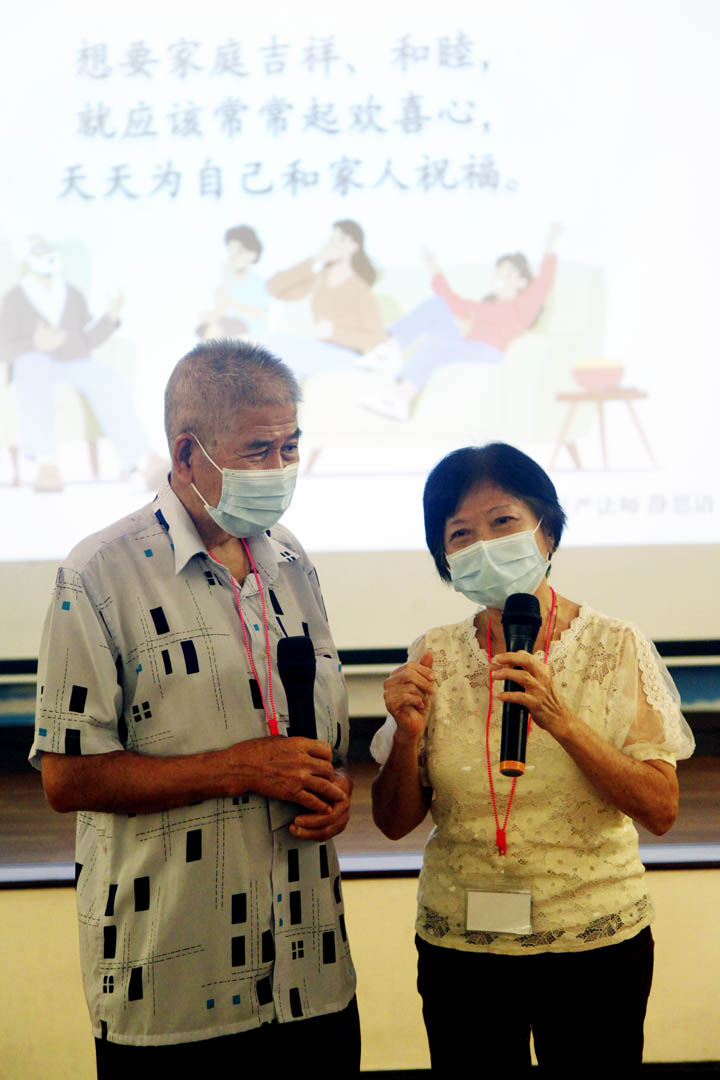 另一边,七十多岁的夫妻档颜素琼和林亮全与大家欢喜话家常。“今早迟了,错过健身操。虽然迟到,我们没有缺课,怎样都要赶到。”颜素琼笑开怀地分享。