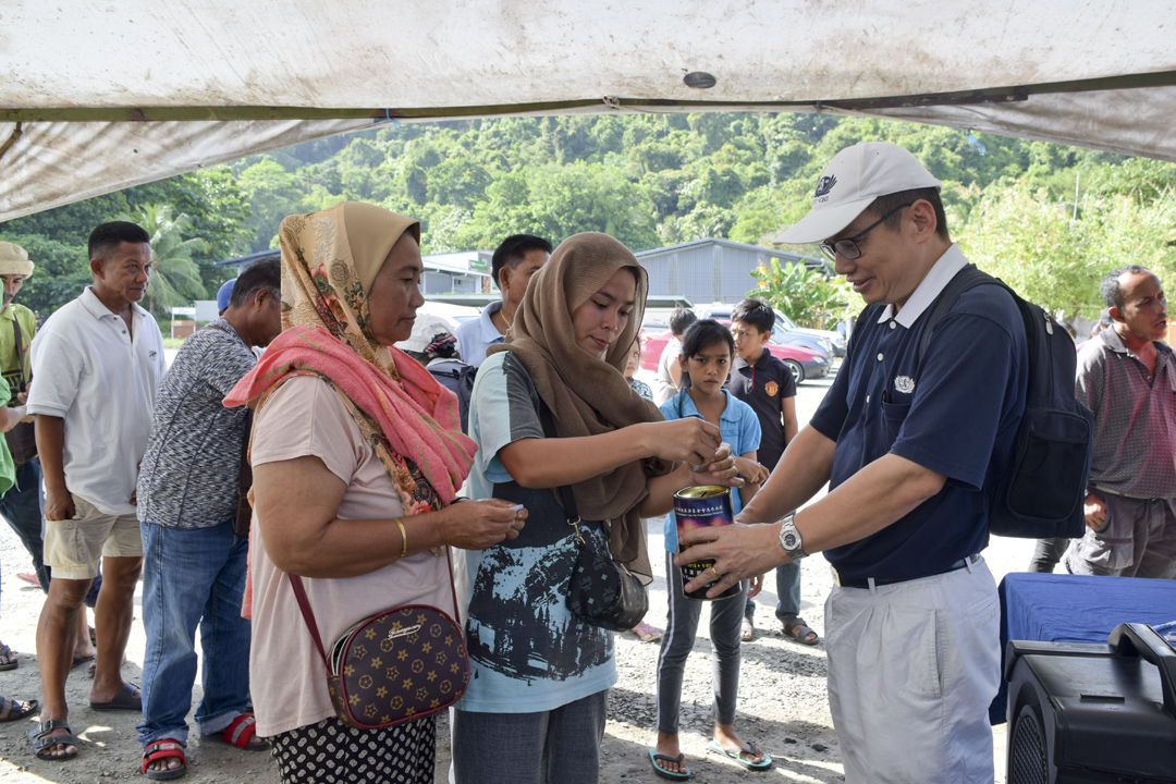 志工于2月27日下午三时展开发放。而在发放前夕,志工提早到场考察,在得到甘榜诚记村长阿丁阿旺(Adin Awang)的允许下,使用现场的帐篷以及联络灾民到场领取祝福金。