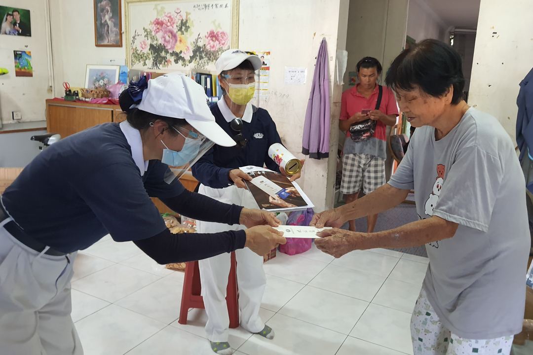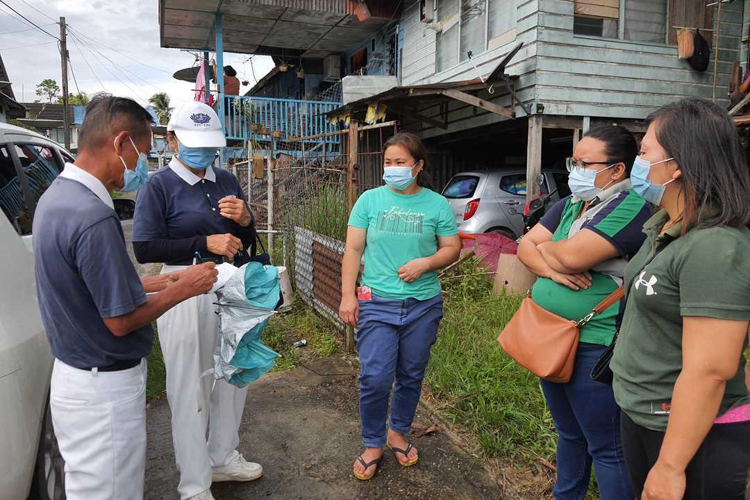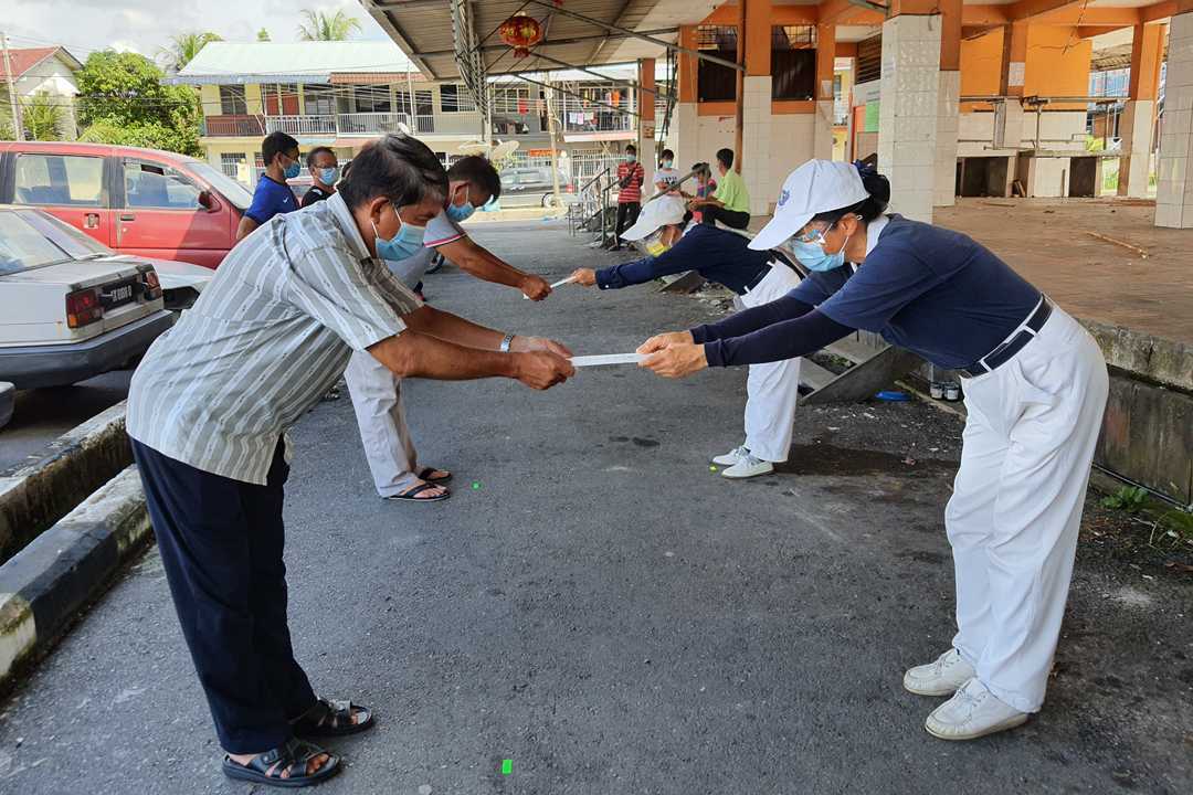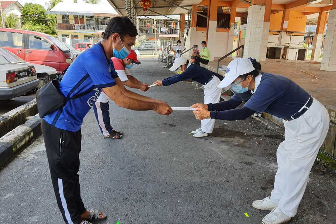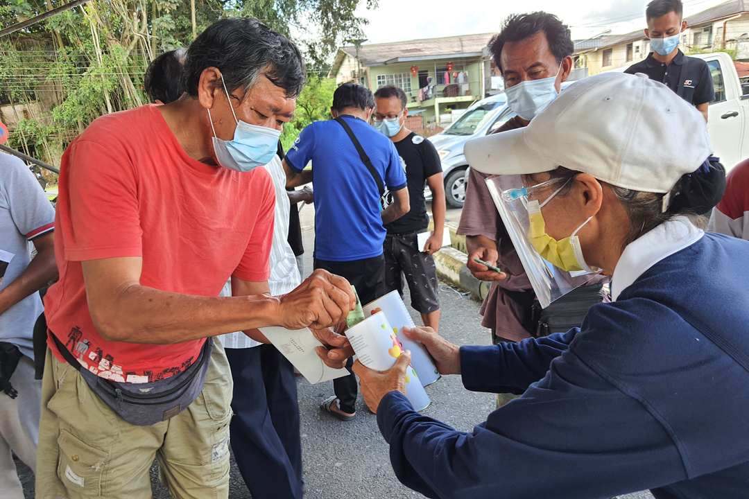 基于诗巫疫情严峻,3月31日下午二时半,志工选择在灾场附近的菜市场前方空地进行发放,让彼此能保持安全距离。志工都做好个人防疫措施,并准备净手液,为每位到来的灾民净手消毒。