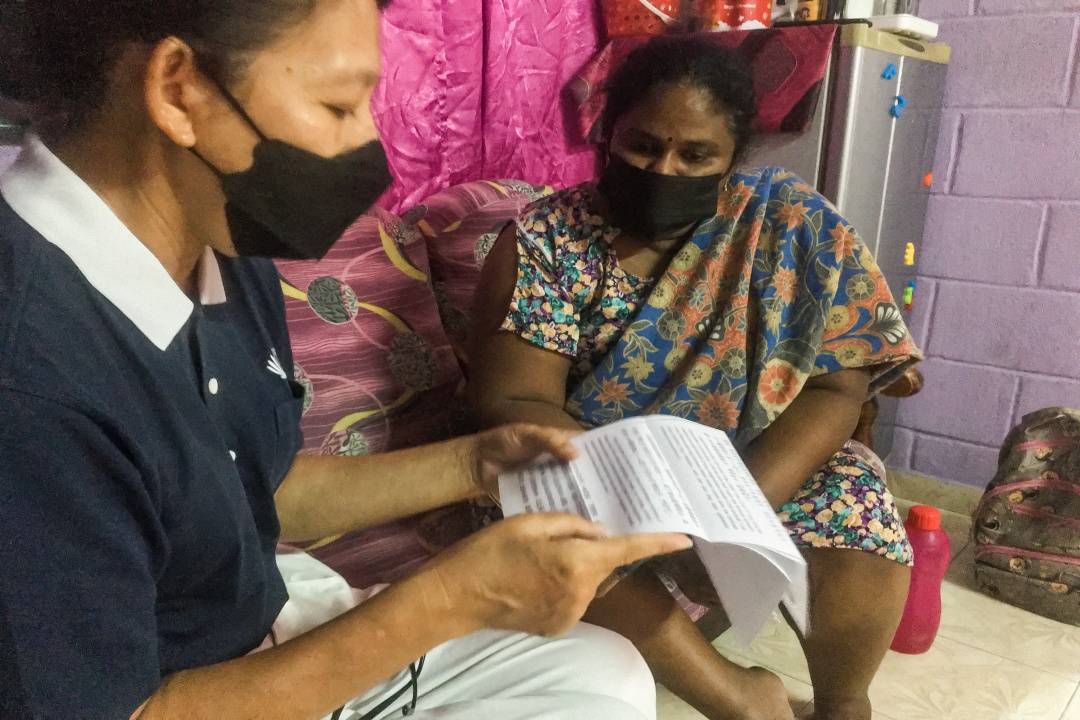 现值卡对受惠者达森女士(化名)的家庭而言宛如及时雨。“我家的米今天刚好吃完了,这些钱让我现在就可以去买一些干粮,还有缴交之前欠下的水电费,真的很感恩你们。” 【照片提供:林美萍】