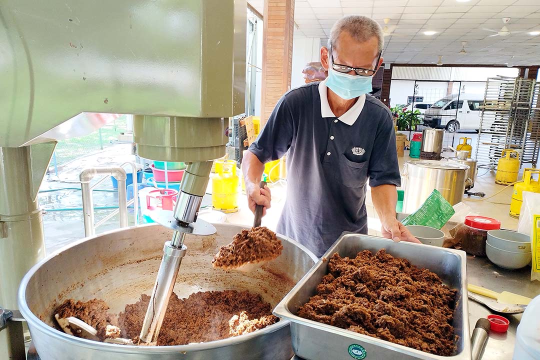 另一个优点,“搅拌锅”设有温度表,火候掌控得宜,故馅料可炒得均匀又省力。以往他需双手大力地不停翻炒,更不能随意走开,有时火候控制不当就烧焦。他也因锅子不大,一天得翻炒三轮的馅料,炒一锅得花两个多小时。如此不停地翻炒,加上热气腾腾,除了汗流浃背,更是疲惫不堪。今年采用机器翻炒,工作轻松许多。他开心地说:“翻炒过程,我还有时间去与志工聊天,还可以喝茶休息呢!”
