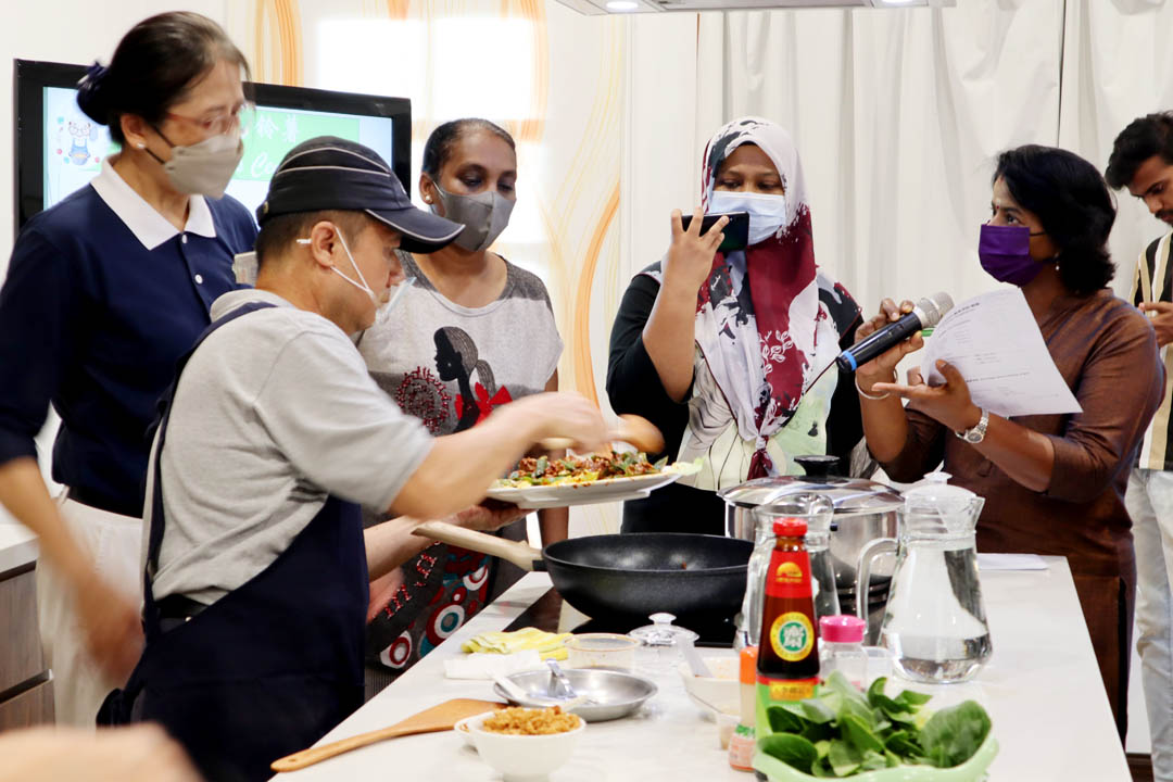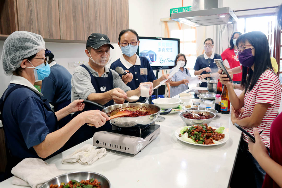 单纯的听说不如实际学习,现场品尝,因而促成2023年6月5日一连举办两场以华语与马来语进行的照顾户素食烹饪示范教学的因缘,共有二十二位照顾户报名出席,他们皆是家中的一家之“煮”。课程设计以家常菜为主,食材采买方便,期盼透过体验,提升大众对素食的接受度,且人人皆能轻易上手,达到健康与环保双重目的。