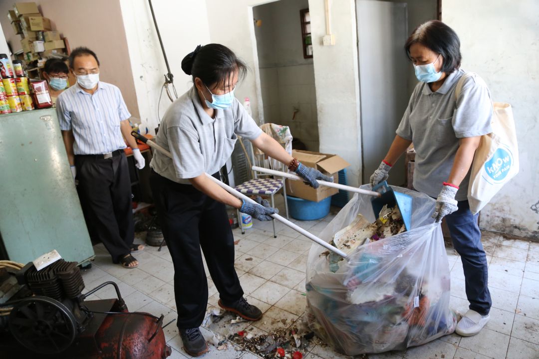 接着,志工们三五成群清除厨房、卧室以及客厅里的对象。当中不乏有陈年未经清理的垃圾,一袋又一袋的“宝物”经大家分工合作下,井然有序地被清除和分类。而每一对象被丢弃前,志工皆询问并取得夫妻俩的同意后才执行,因此现场呼唤两人的声音此起彼落。