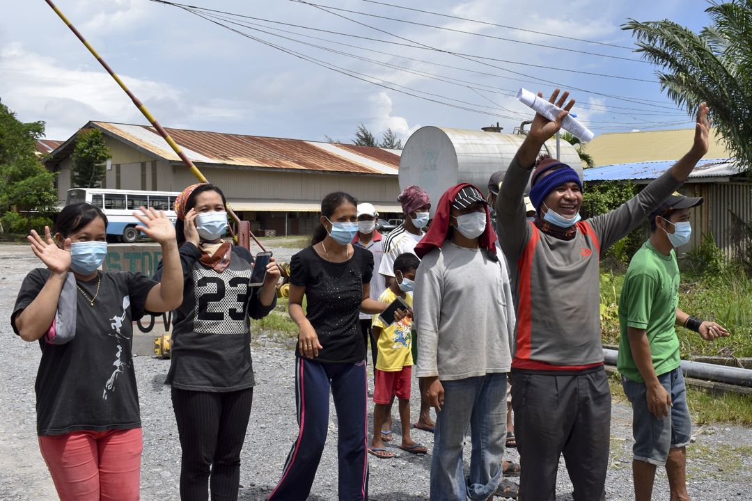 5月5日,志工于午后来到瓜拉峇南(Kuala Baram),准备发放物资给在三家临近板厂工作,约九十八位的印尼籍劳工。其中一家板厂的主管弗雷迪克诺表示,在行管令落实期间,外劳们有三周没有工作,现在刚进入第二周的半天工作制。