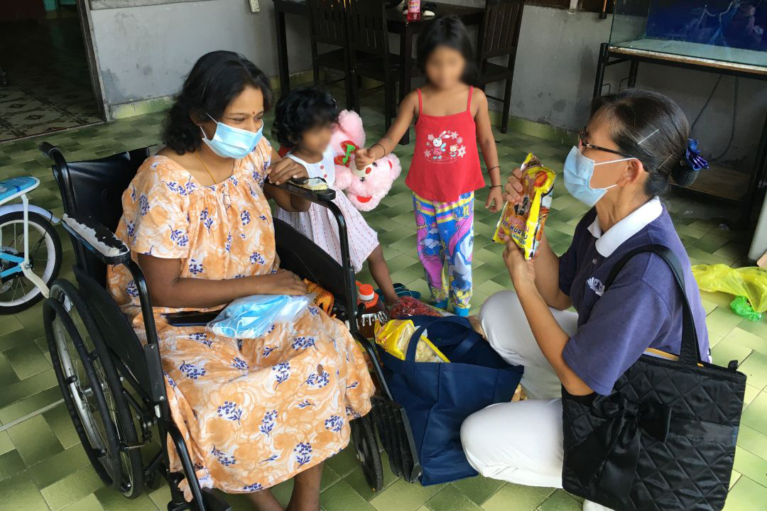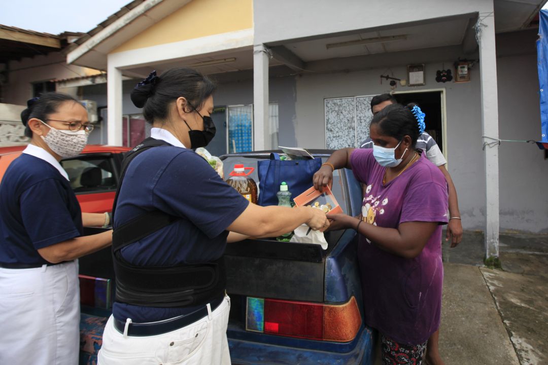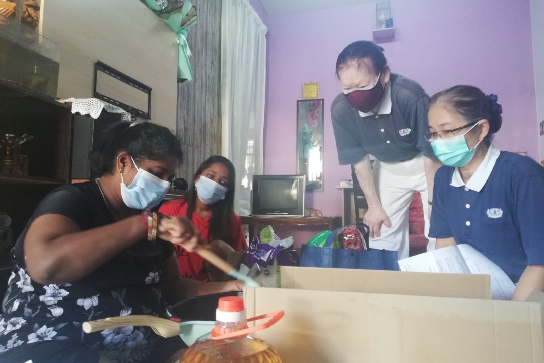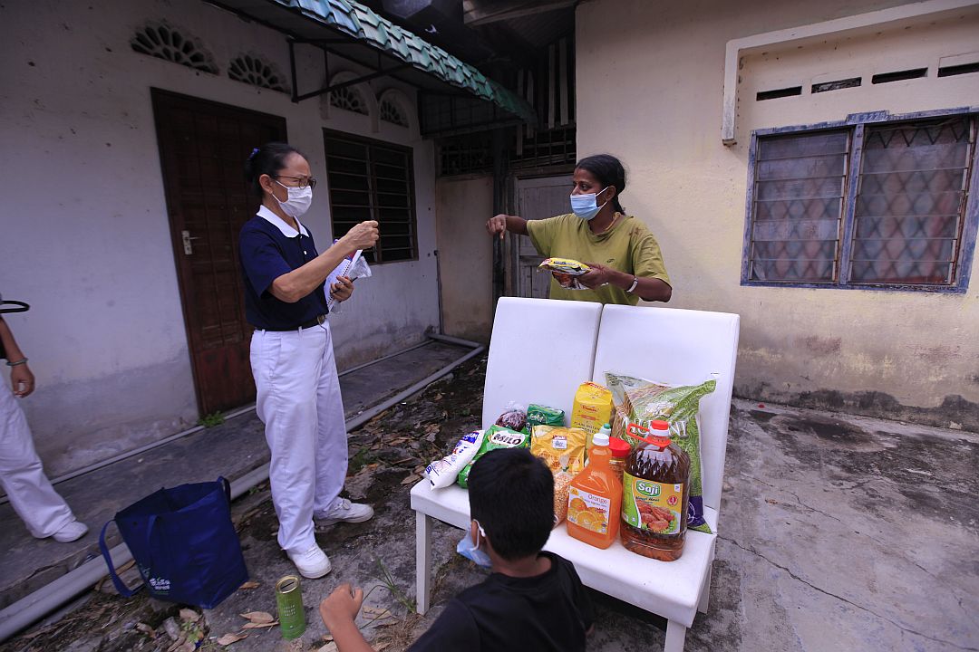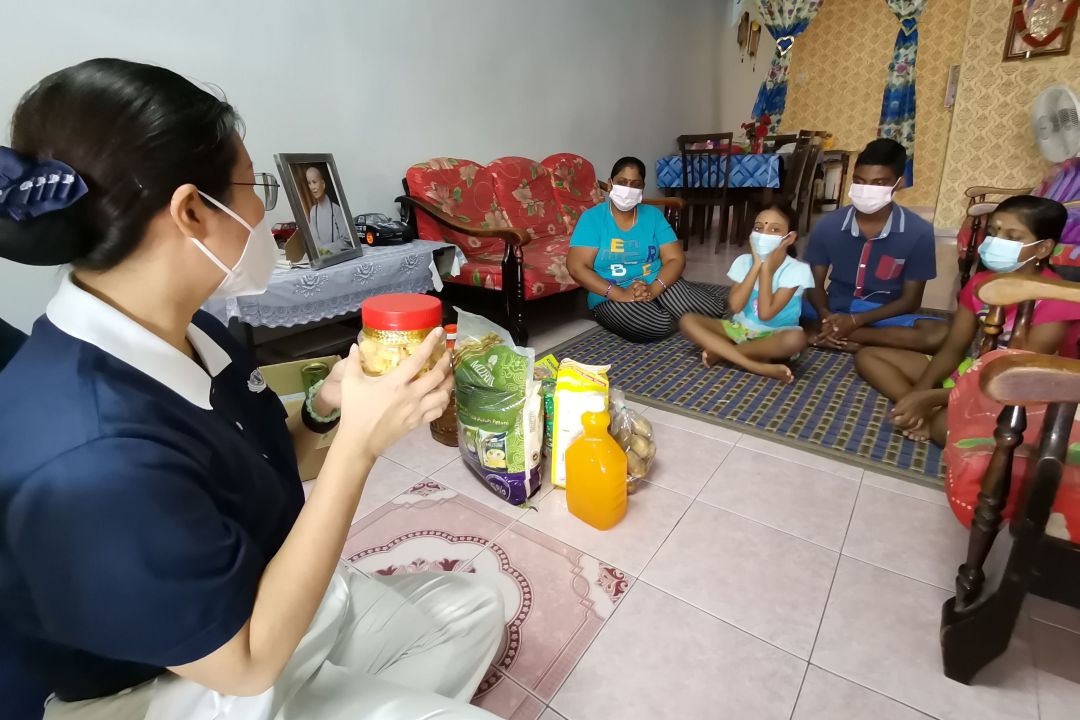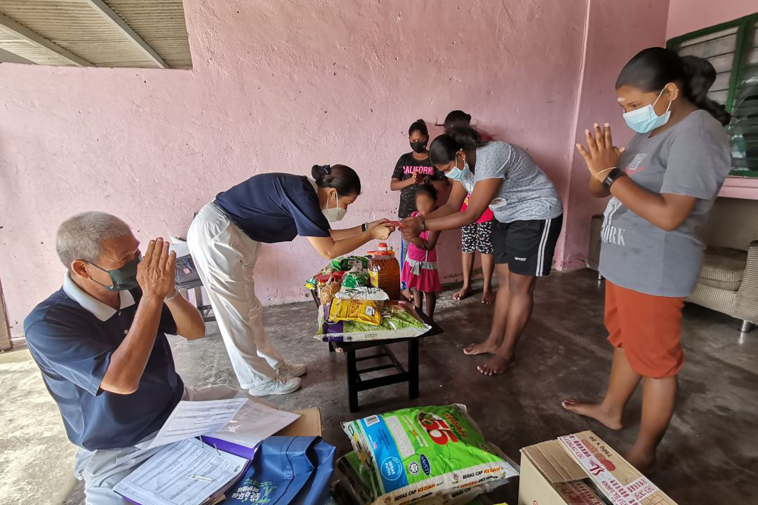 志工也来到萨拉斯瓦蒂(Saraswathy A/P Raman)家,几年前他们曾是慈济照顾户,现今再度跟慈济结缘。新冠疫情导致生活陷入困境,加上身为卡车司机的先生,因意外伤到手,无法工作,目前等待动手术。