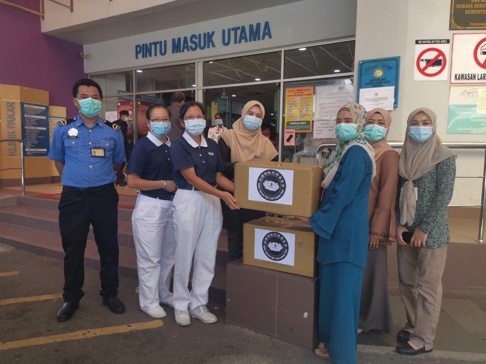 志工颜秀桃分享:“除了提供面罩,慈济芙蓉联络处也供给海苔饼、梳打饼、美禄(Milo)、咖啡冲泡饮料予芙蓉中央医院、波德申医院和林茂医院的前线医护人员。”