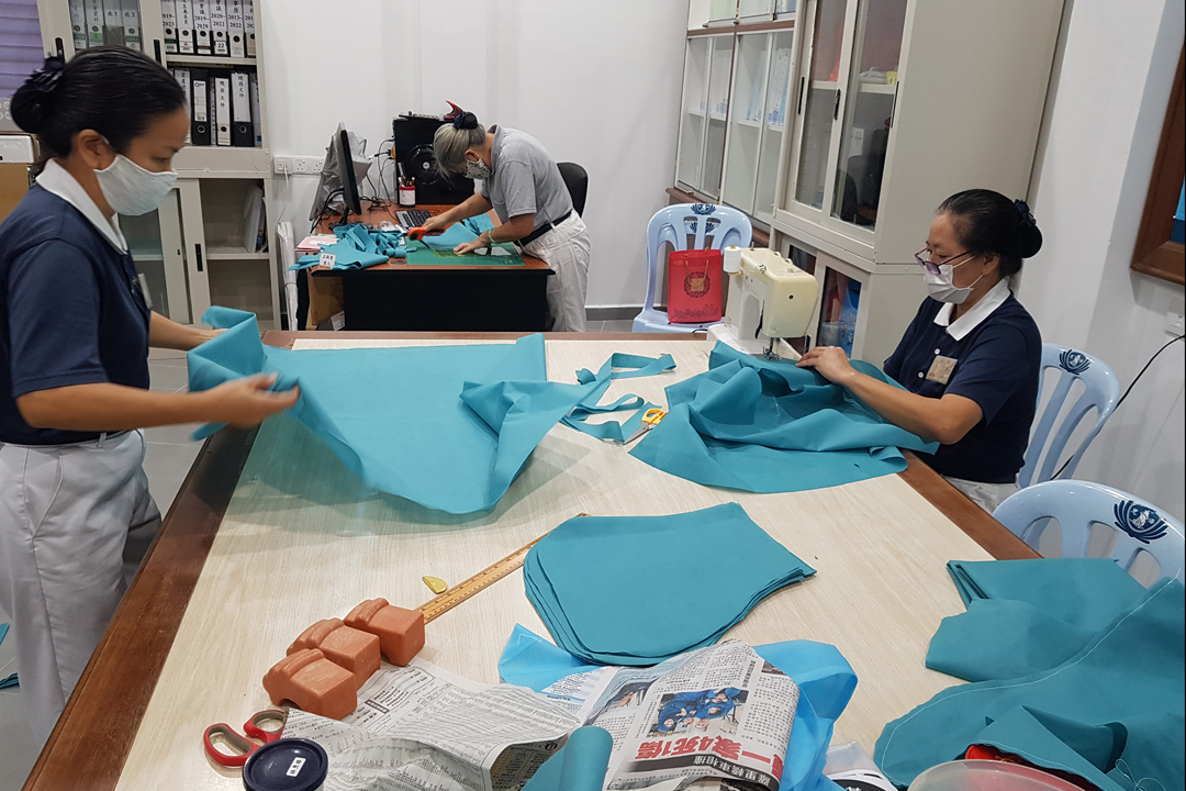“4月2日当天,华人接生医院也带来了材料,希望志工协助裁制两百个头罩。志工林秀榕在会所裁剪后,分别由几位志工带回家中缝制,第二天就已完成了。KPJ医院也于4月3日带来缝制材料,请志工协助裁制防护头罩和鞋子。”颜秀桃继续分享。
