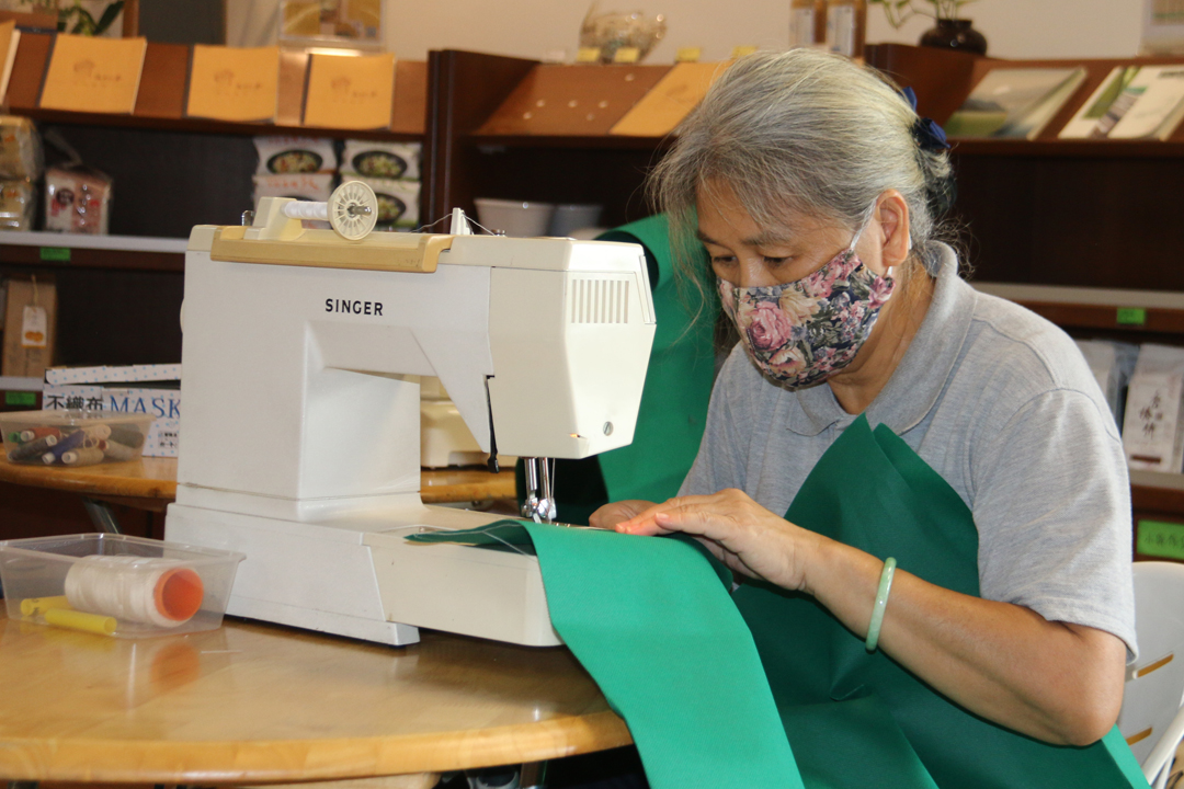 志工林秀榕(明发)表示:“少年时曾跟随姐姐学过裁缝,婚前也曾在家乡柔佛新邦令金(Simpang Rengam)车衣厂工作了四年,期间曾接触各类型缝衣机、车边机,认识了什么是双针、烤白以及学习到裁剪和缝纫各种衣物的技巧。”