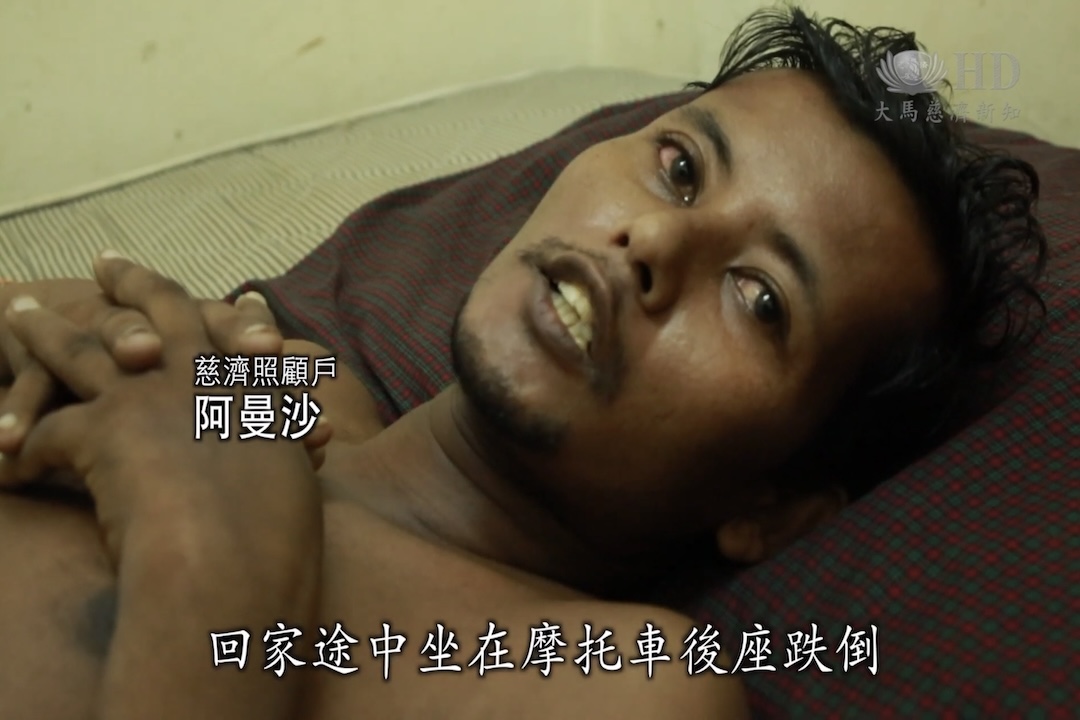 来自缅甸的阿曼沙因家乡被焚毁,被迫逃离,辗转来到马来西亚谋生。不料一场意外,让他下半身瘫痪。疼痛、感染与无助,日夜交织。他说,自己每天都在哭。【摄影:大爱新闻截图】