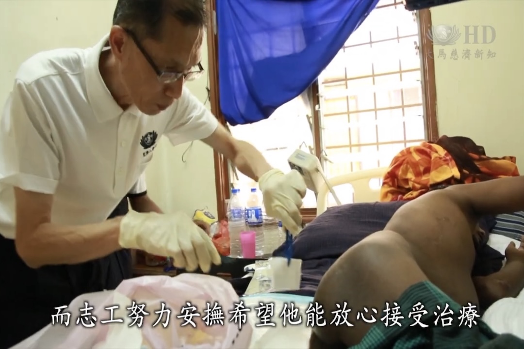 联合国难民署将他转介至慈济雪隆分会,由慈善志工与人医会志工携手并肩,逐步让他的伤口得以复原,生活也慢慢稳定下来。【摄影:大爱新闻截图】