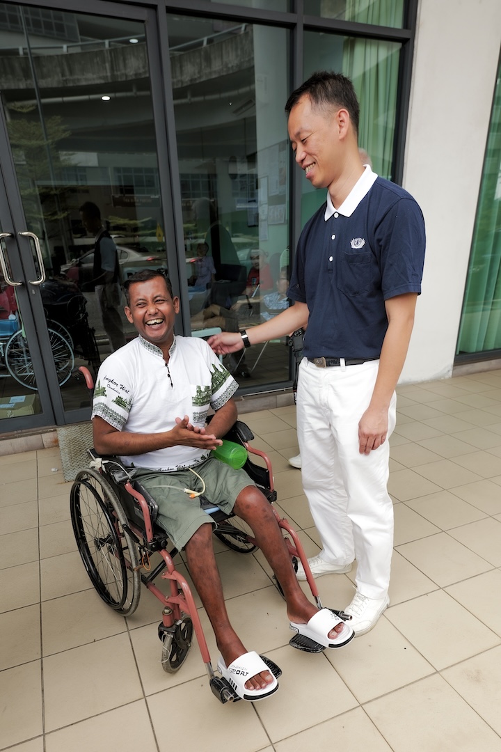 这里空间不大,却承载了一个人六年的岁月。阿曼沙(Aman Shah Bin Abdul Malik)坐在轮椅上,一看见志工走进来,脸上立刻浮现久违的笑容,那是期待,也是喜悦。