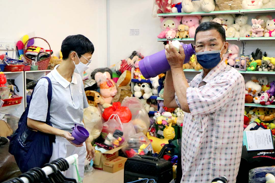 他表示到惜福区选一些环保物品,不但可以节省钱,又可以延长物命且不会浪费。他说:“我祝福志工及全世界人民平安快乐,过个快快乐乐的新年。”