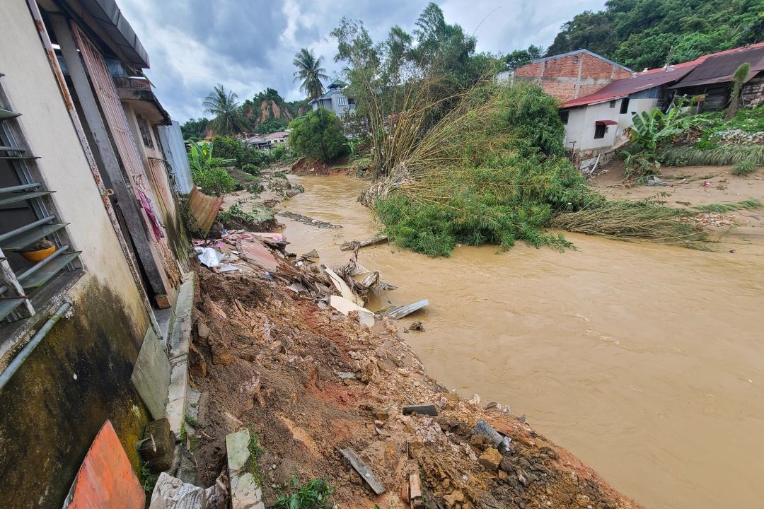 据当地萧运萍县议员告知,其中一间茶餐室,洪水从大门前汹涌而入,冲破大铁闸门,将店里的桌椅和餐具用具,一扫而空从后门冲入河里。靠近河边的住家或店屋,有好几家厨房后墙被冲破,一开后门就是大河,河水湍急,情况危急,令人担忧。有间住家的厨房屋顶和墙被风雨打垮,吓坏当时在家的一对老夫妇。还看到有些双层店屋,二楼塌下,其中还看到有一棵大树连根一起被冲入一家店面,情景实在难以令人置信。