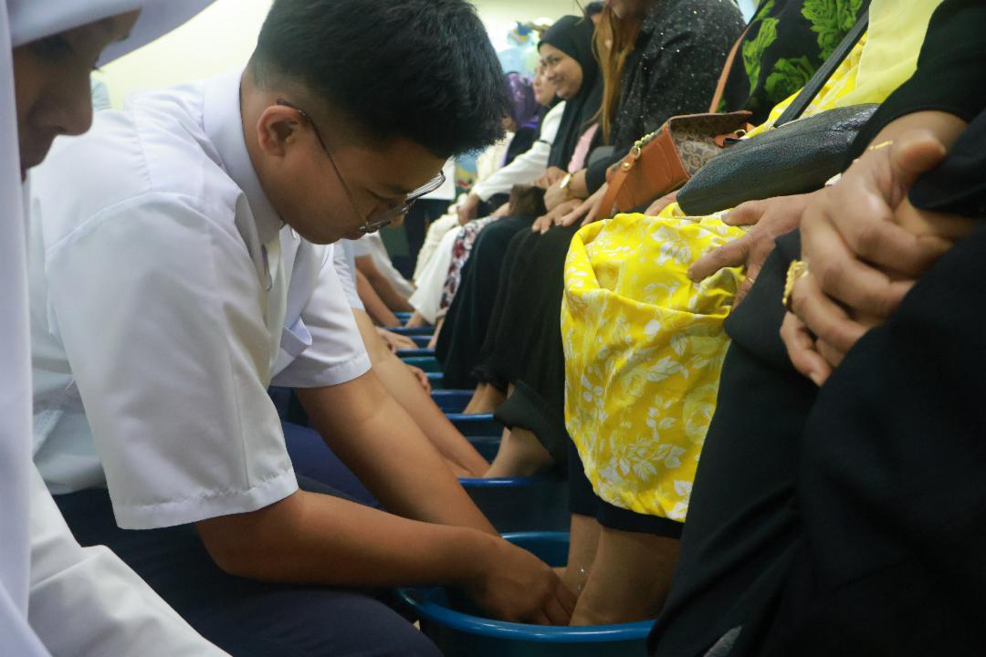 毕业时刻,校方特别安排孩子为父母浴足,让他们懂得知恩、报恩,并将它付诸在行动上。【摄影:侯佳惠】