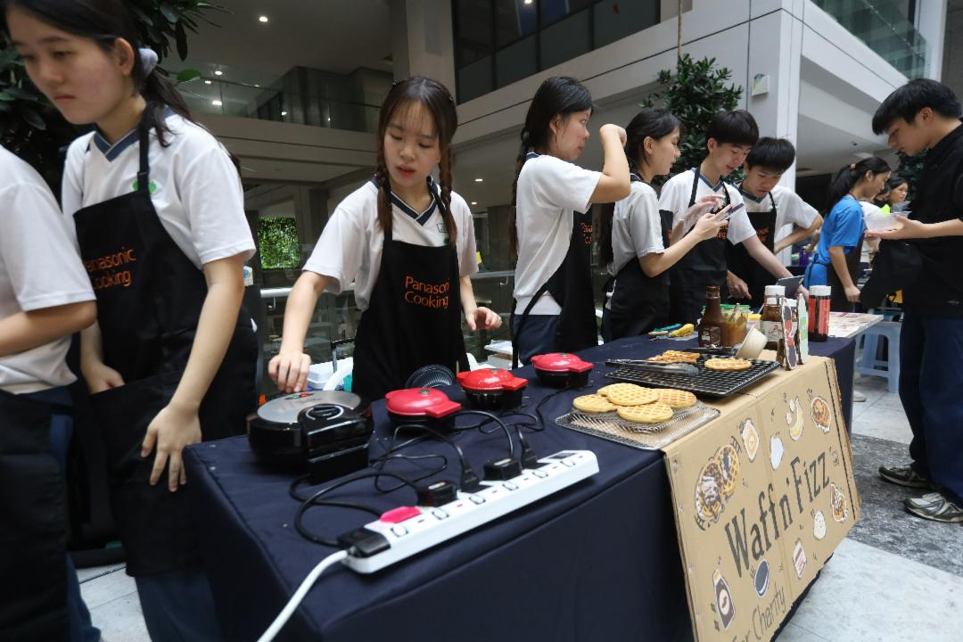 其中,韩式饭团与炒饭摊位的学生清晨三点便起床准备,只为在义卖会上尽一份力。 格子松饼摊位更是经历一段小插曲,家长借出的三台机器在义卖进行到一半时,其中两台突然故障,家长得知后连忙赶来维修。即便最后只剩下一台机器可以操作,孩子们仍坚持继续,把活动热度延续到最后一刻。