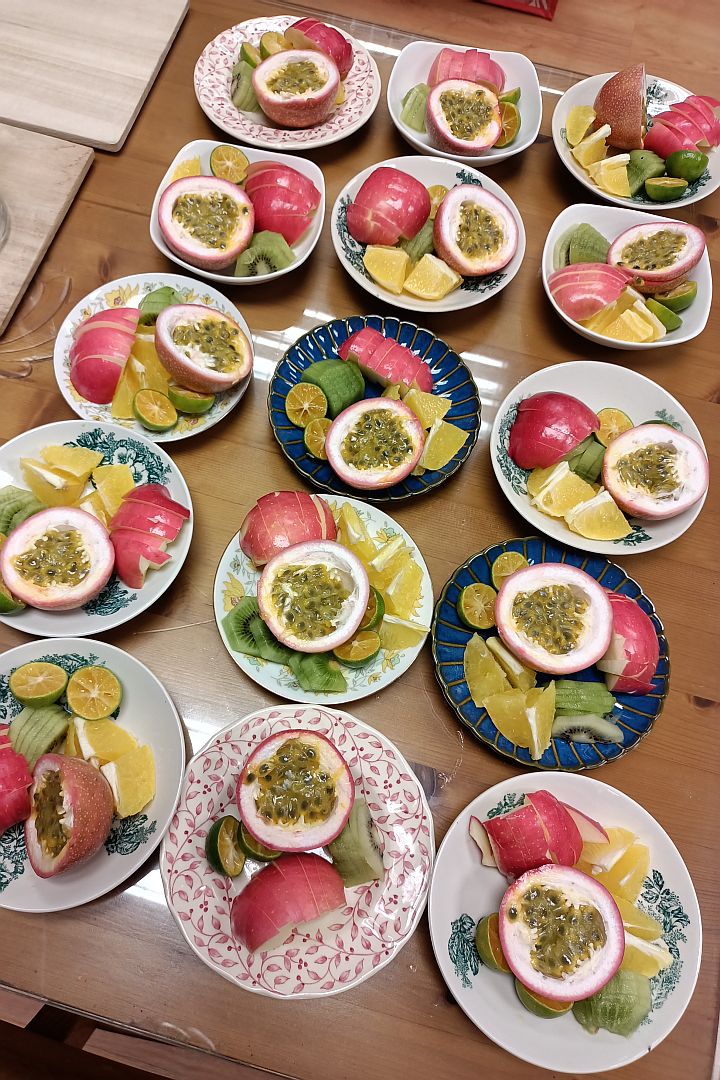 除了冻顶乌龙茶,赖老师也教大家自制水果茶,选用新鲜水果如奇异果、苹果、橙、百香果、酸柑等,加上自制苹果酱代替糖浆,再倒入泡好的冻顶乌龙茶,或百香果茶、佛手茶等,就是一杯五彩缤纷、老少皆宜的水果茶,还可调成冷饮,令学员们惊喜连连。