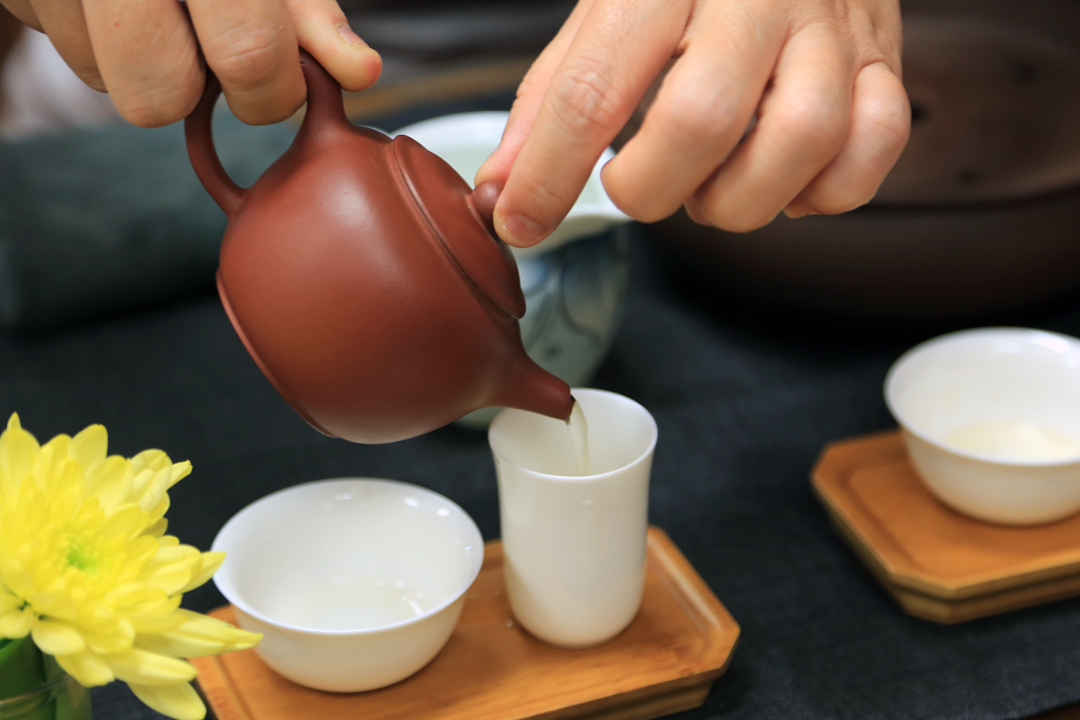 第一泡茶,茶叶只浸泡二十秒,后将茶倒在闻香杯辨认香气,再倒入茶杯。奉茶之法,先长后幼、先客后主,依身份的高低顺序,最后才是端给自己。