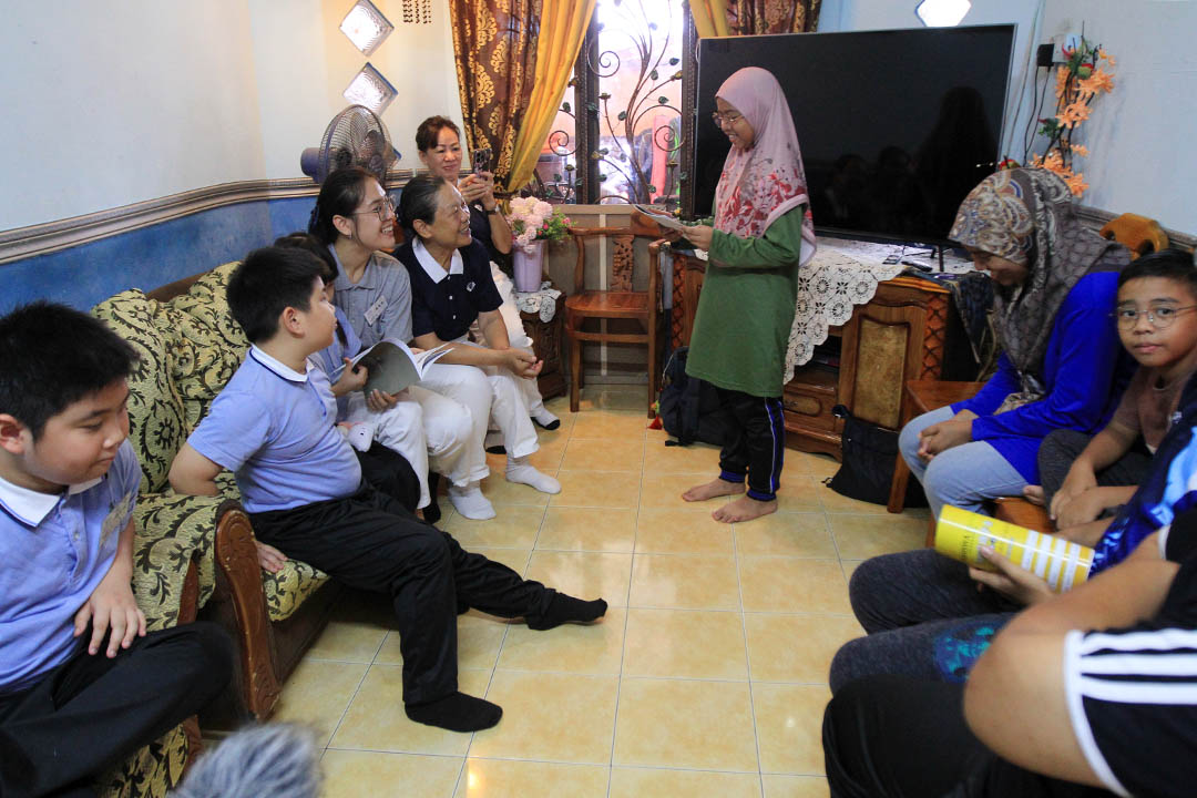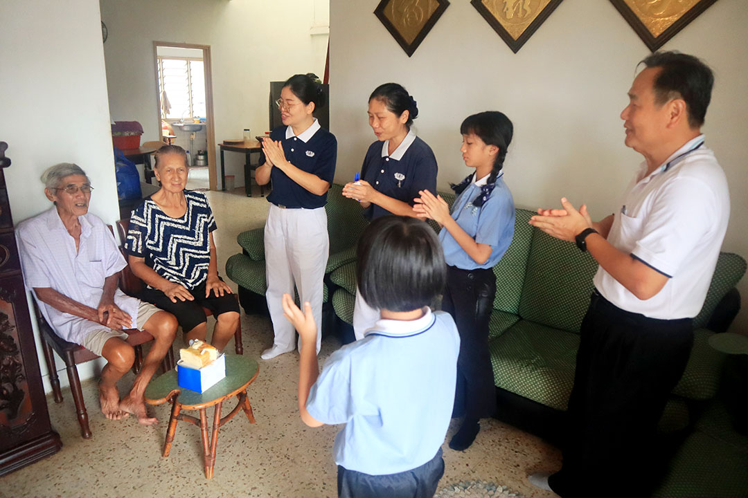 在乌绒巴西(Ujong Pasir)社区,志工与亲子班学员们走进年长的梅广圆夫妇家中,不仅带去关怀,更为刚迎来七十五岁生日的梅广圆准备了一场简朴却温馨的庆生活动。孩子们的清亮歌声响起,志工与家长们围坐身旁齐唱生日歌,让这对孤老夫妻久违的家中响起笑声与温暖。