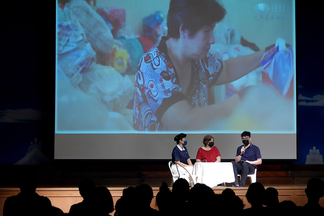 单亲的温美真因志工的陪伴与慈济的依靠,从忧郁症中走出不一样的人生。如今她与志工投入做环保,以己力回馈大众的爱。林佑兴勉励在座的学子,成长路上面对许多挑战,保持自律心,尽心追逐梦想,做一位有爱,对社会有用的人。