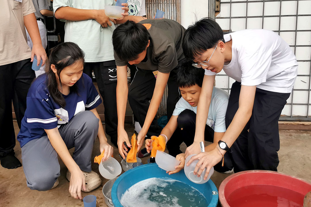 营员们在用膳后自行洗碗,学习自理也减轻工作人员的负担。【摄影:廖雯彦】