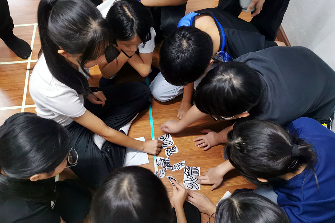营员合力从拼图中找到自己的组员。【摄影:廖雯彦】