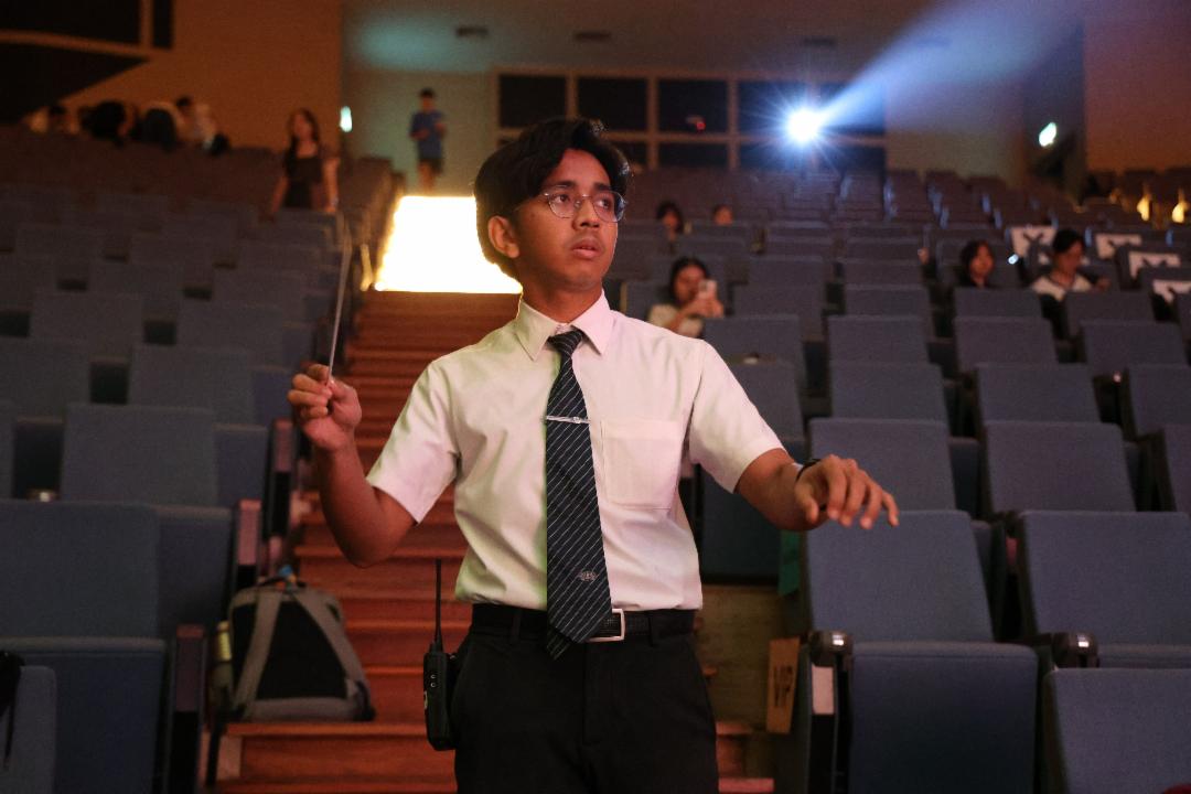 吉隆坡慈济国际学校的歌舞剧已经连续三年选择使用现场乐队伴奏,这不仅需要乐手自身技术,更需要团队的默契配合。乐队的乐手们经常一起排练,互相调整与协作,遇到难题时,他们共同克服。自八月起,乐队进入了密集排练模式,每天的小休、午休时间都能看到他们在礼堂中的身影,偶尔还会留校进行排练。