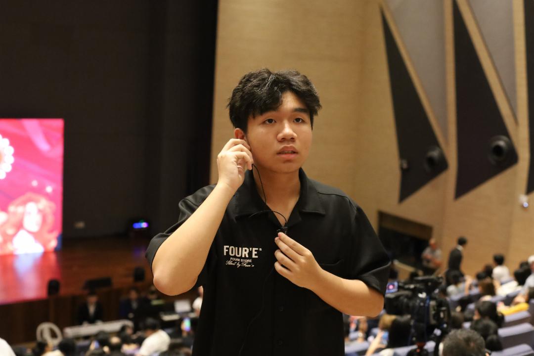 十年级合心班的连于皓今年升任舞台组组长,负责舞台上的道具摆放和帷幕操作。舞台组必须在几秒钟内完成场景的切换,这对动线规划和团队配合要求极高。因此,当演员彩排时,舞台组也需要同步练习,以确保演出当天零失误。