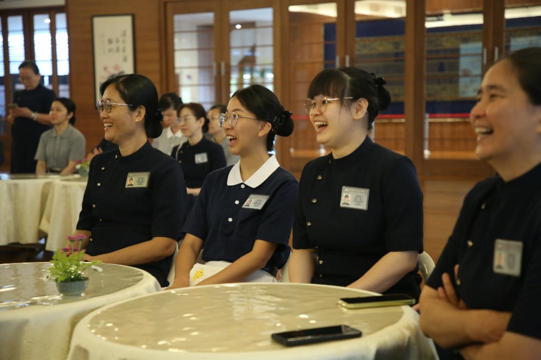 从李玲惠校长的分享中,廖月霞体会最深的一句话是“做别人的事,练自己的功”。她说:“每次进校前,我们需要花大量时间备课,包括寻找上人开示影片、设计流程等。有时为了找一段八分钟的上人开示内容,我必须看完四十八分钟的影片,将内容理解、内化后才能剪辑出来。这些看似为别人付出的过程,其实学习最多的是自己,是在练自己的功。 ”