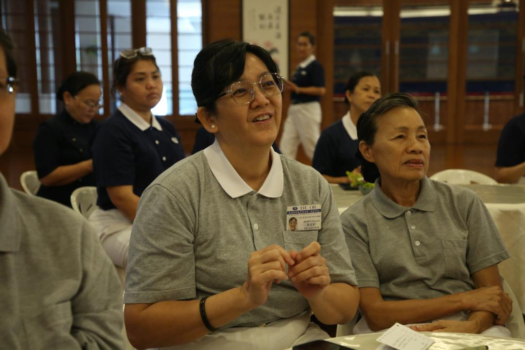 张月瑜起初是抱着一分单纯和不舍之心加入大爱妈妈行列。她说:“当初我是不舍师姊们在大爱妈妈成长班做得很辛苦,因此想付出一点力量。 ”