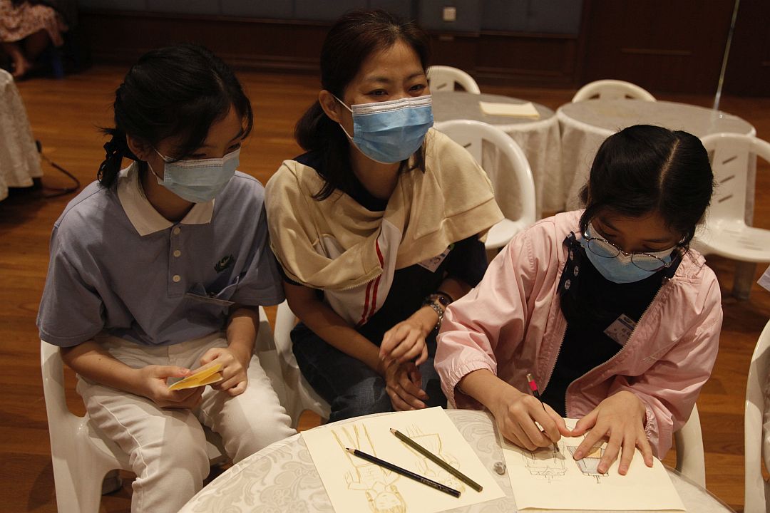 同仁黄婉琦(懿琦)则透过实际体验,带动大人与孩子换位思考,画下彼此认为的父母亲或孩子的穿着打扮形象。亲子们才发现,原来双方对于美的定义与美的感受各有另一番诠释。她分享说:“绘画过程亲子间的互动,着实反映大家在日常生活中的互动,看见父母亲爱孩子和保护孩子的心,从中指挥。但是孩子有时有自我的想法,想要有所突破、创新,却被家人的保护圈限制住,无法表达自我的意见。”