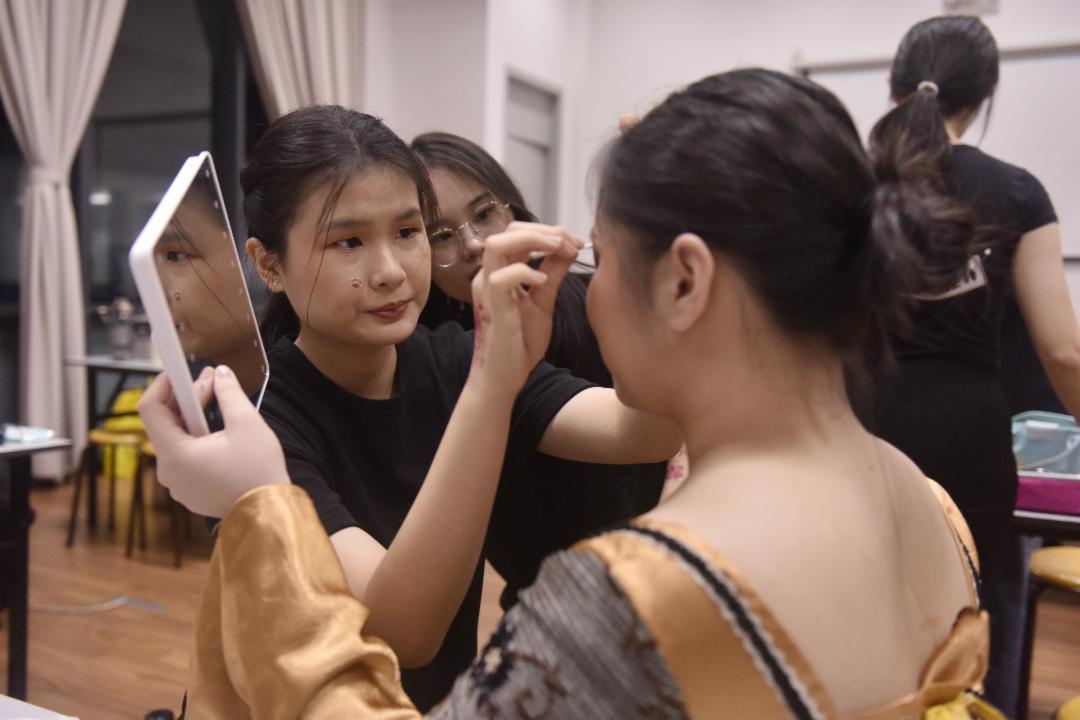 上了国安老师的课,允摁才知道日常妆和舞台妆的不一样,自己化妆和帮别人化妆是两回事。 “除了舞台妆,我还学会了与人沟通和共识,观察对方的外表和肤质。这些对我来说都是全新的知识。”