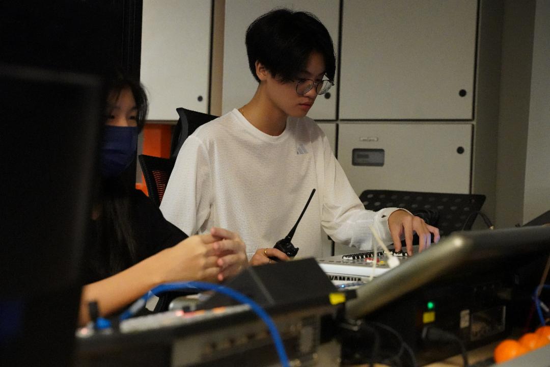 这是泳豪第二年承担这个职位。和去年不一样的是各种设备的升级增加了难度和准备。演员和乐器也比去年多了许多。 “表演开始,同一时间要管控的事情很多,如灯光、音效、背景,所有分工合作非常重要。另外我们也要非常的专注,在准确的时间点做反应,也要很注意每一个麦克风的音调,时刻做出调整,确保观众有最舒服的听觉效果,非常感恩团队的合心和气。”