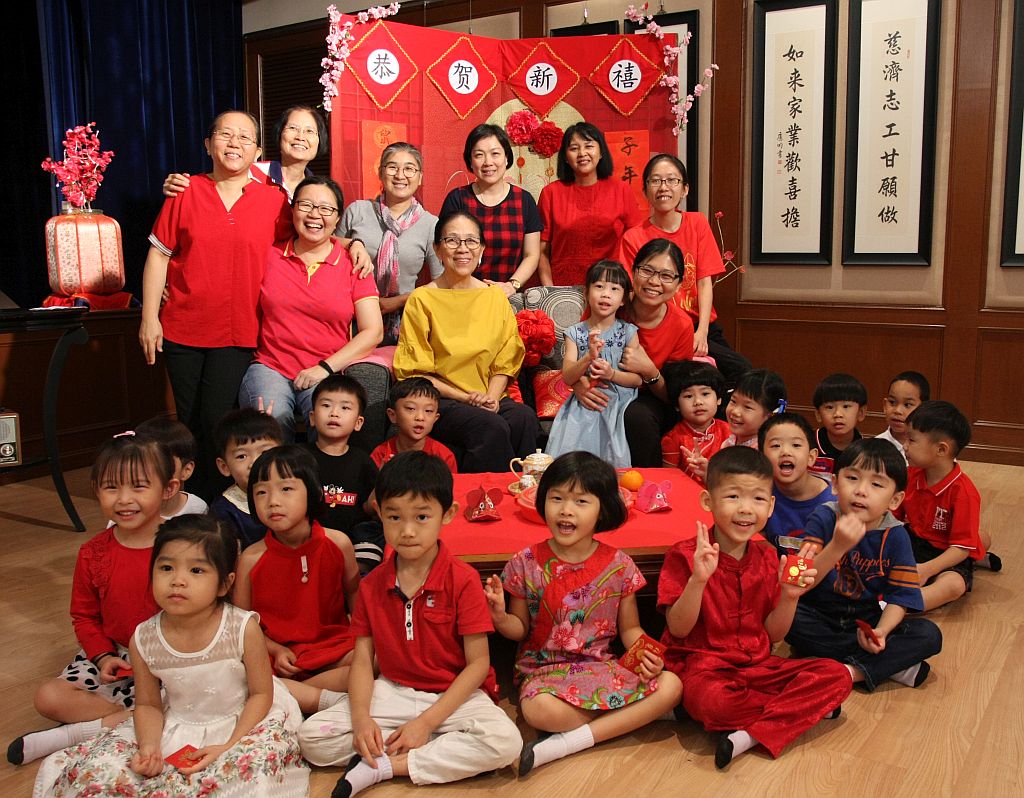 之后,老师带着每一班的孩子到各班和同仁办公室拜年,有班级带来伴手礼如代表吉祥的柑橘或应景的年饼,让孩子明白到他人家拜年的礼节。另外也引导孩子们将学习到的吉祥话如“恭喜恭喜”、“万事如意”、“身体健康”、“龙马精神”、“学业进步”等送给大家,只见现场或是送上拥抱,或是握手致意,好不热闹!老师们也趁机教导大家拜年的礼仪,自身的饮食和行为礼貌等。