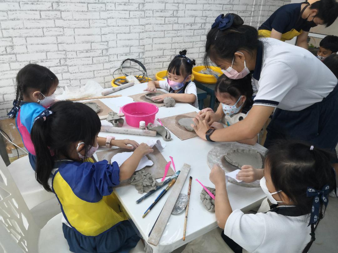 8月17日,轮到四岁信心班和毅力班的幼儿生兴高采烈地列队等巴士,都很期待赴一场探索和创意的校外体验课。巴士载着一班兴高彩烈的学生前往位于雪兰莪蒲种的“Jolly陶器工作坊”。大家都很兴奋要学习制作一个属于自己的陶艺品。