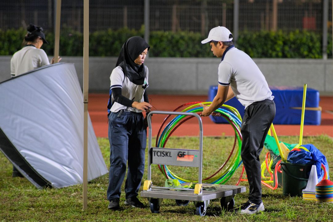 22日天未亮,巫裔老师万诺娜季哈(Wan Nornajihah)与老师们一早报到操场,张罗一切运动事项。她时而搬动体育用具,时而与同事们沟通做准备。
