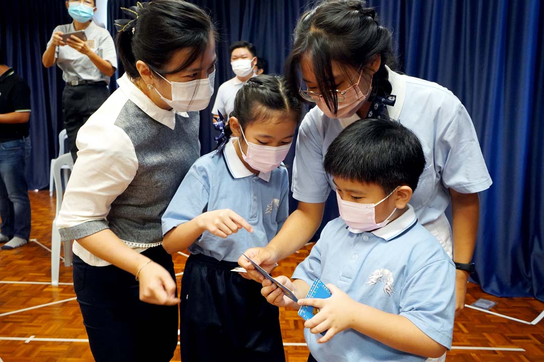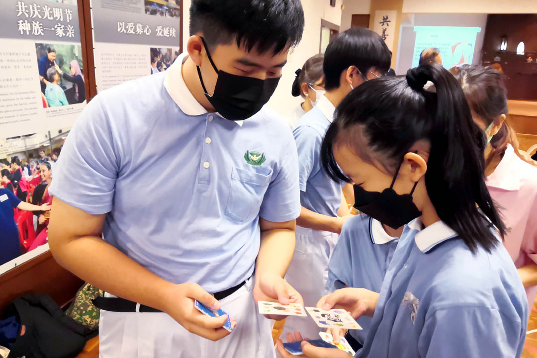 顿时,佛堂传来声声喊叫声“脚车!”、“花!”、“长颈鹿!”、“乌龟!”亲子班学员、慈少班学员、家长及队辅们都放下身段,大家仿佛回到童年时代,兴高采烈地玩游戏。八岁的陈如玉获得全场最多牌,赢得大家的热烈掌声。陈如玉分享诀窍,“要快速看,记下来,也要快快讲出来,才会得到多多牌,很开心认识很多朋友。”