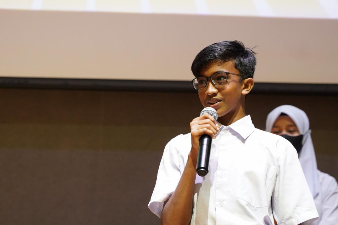 第一位分享的是安华沙迪(Anwar Sadiq Ramzan Ali)。安华与大家分享了他的住所和他的家人。妈妈是家庭主妇,爸爸以资源回收的工作撑起家里的经济,要养活安华五位兄弟姊妹和奶奶。课余时间,安华是爸爸的小帮手,帮忙整理回收物。十个月大的妹妹身有重疾,她没有耳朵也没办法自己咀嚼吞食,需要用针筒从鼻子注入食物。给妹妹喂食的任务不简单,可是安华却甘之如饴。慈济合心教育中心的成立,让安华有机会跟大家一样接受教育、参加运动会,他也参加了学校的说故事比赛。安华说:“我跟大家一样是儿童、是学生,虽然我的生活不容易,可是我从不放弃,希望大家保持热爱学习的心、友善和相信自己。”