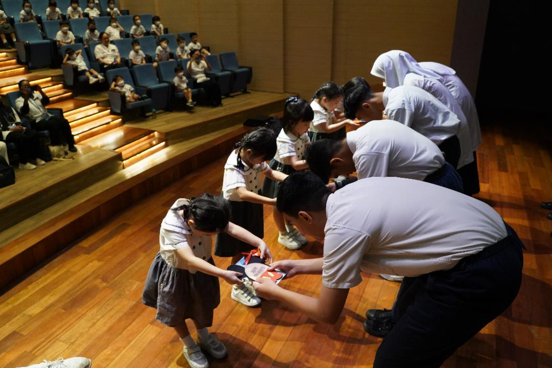 儿童节一早,老师们就带着孩子陆陆续续来到300讲堂。在讲堂里,看见几位陌生的哥哥姐姐。原来今年,校方别开生面、邀请了来自慈济合心教育中心(Tzu Chi Unity Learning Center)的十位难民学生和两位老师来到慈济国际学校,参加幼教部的儿童节。十位学生中有来自缅甸的,也有来自阿富汗的难民。这是他们第一次造访慈济国际学校。